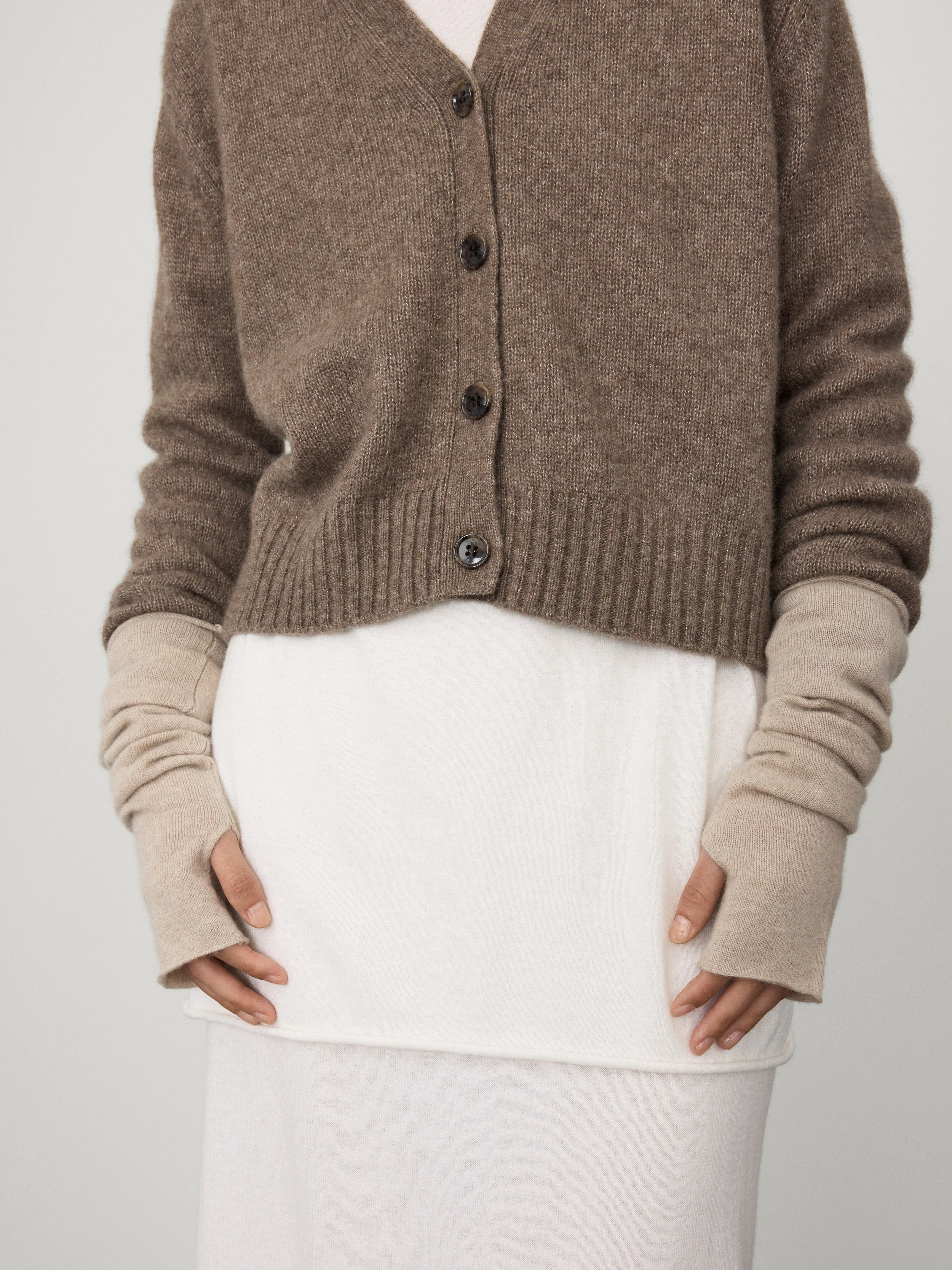A subtle winter accent, the Aspen arm warmers are crafted in plain knit, mid-weight cashmere that feels both soft and soothing. The extended sleeves drape beautifully at the wrists and are detailed with thumb holes and a gently rolled edge.