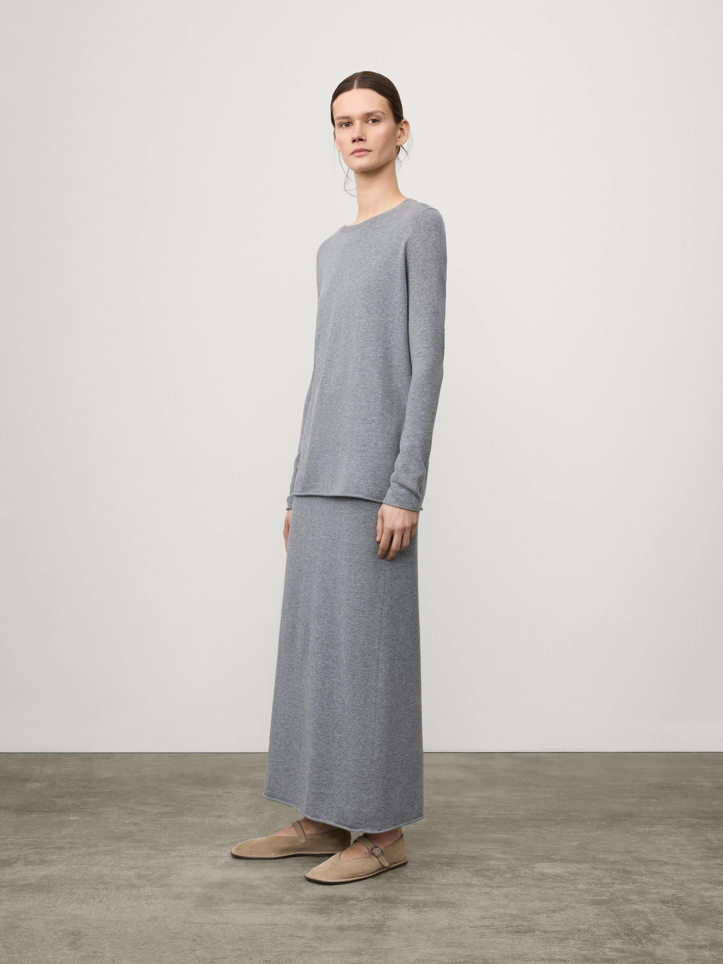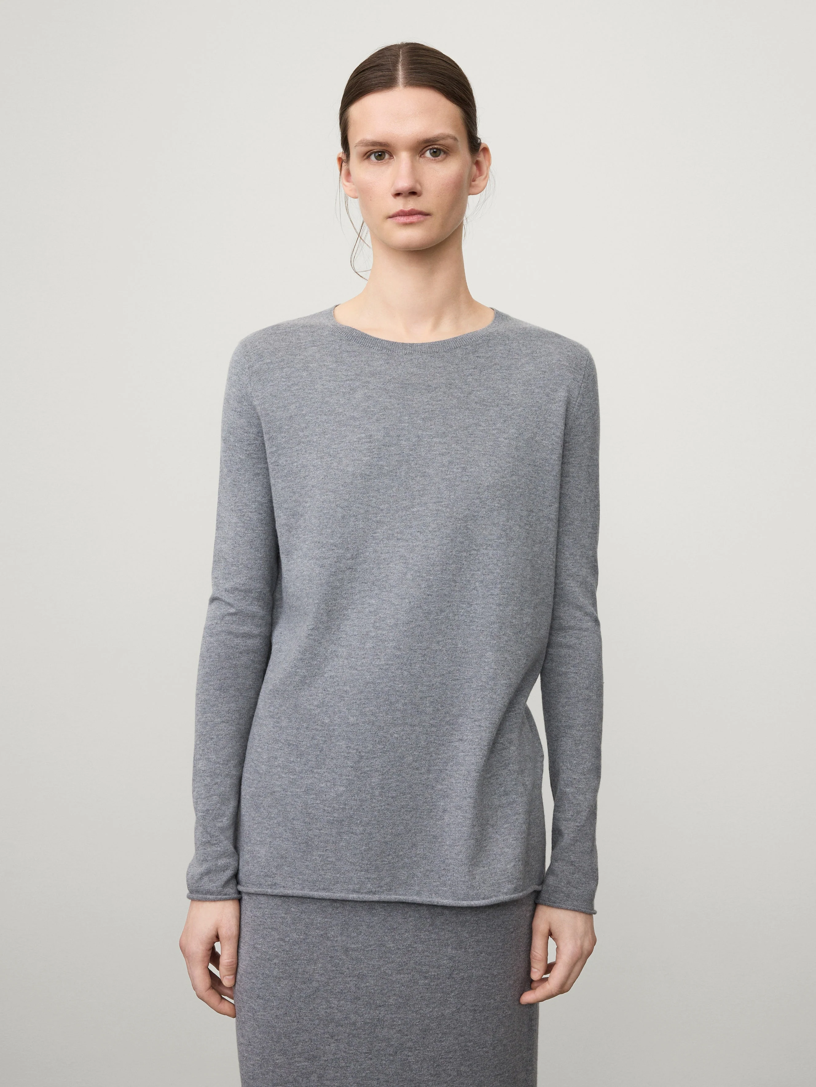 A modern everyday staple, the Maurie sweater is crafted in jersey-like cotton cashmere to generous proportions. The relaxed fit, longline silhouette is framed by dropped shoulders, a round neck, full-length sleeves and a rolled hem which gives the piece a softly directional touch.