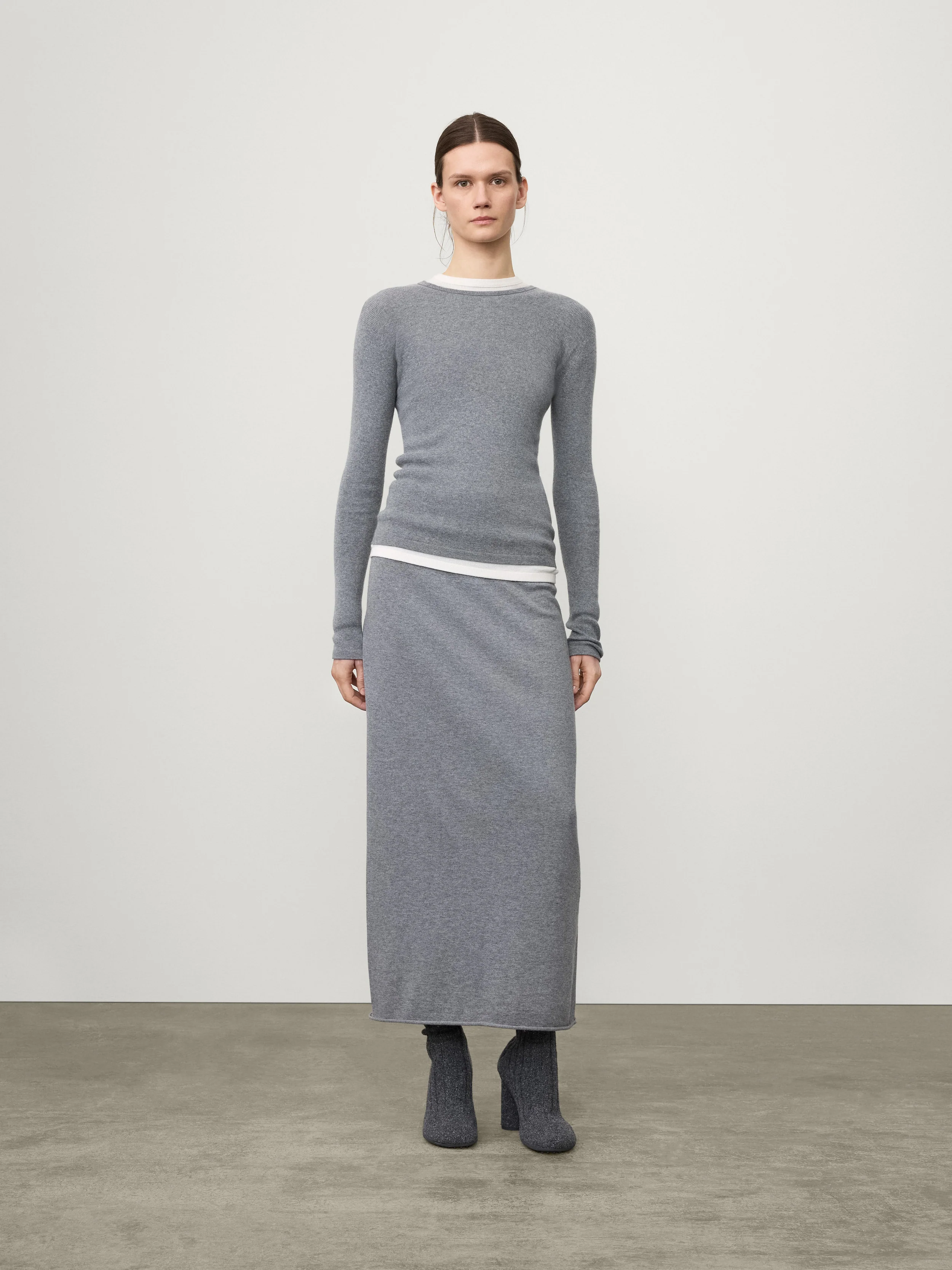 A jersey-inspired staple, the Vivian top is crafted in fine single rib knit cashmere blended with cotton for a light and lofty feel. The fitted silhouette features a round neck, full-length sleeves, a straight hem and a subtle all-over rib.